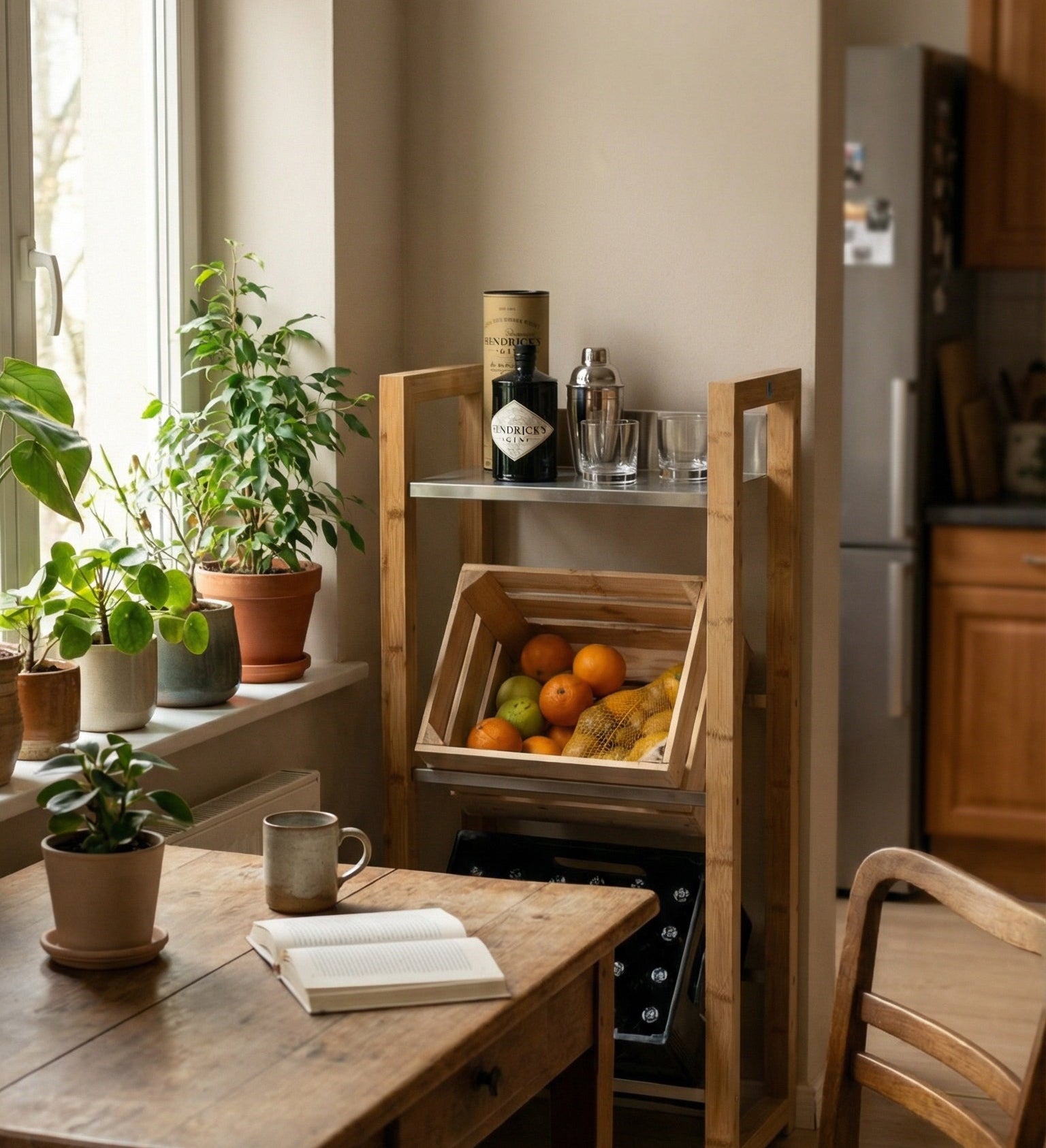 Dieses Regal vereint Funktion und Ästhetik. Die klare Linienführung, die durchdachte Konstruktion und die hochwertige Verarbeitung machen es zur stilvollen Lösung für die ordentliche Aufbewahrung von Getränkekisten.